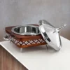 Transform your dining experience with theΒ 32 CM Brass Hot Pot. A masterpiece of brass and wood with mother of pearl, it keeps your biryani, kabsa, halwa, and more hot and fresh. Perfect for special occasions like Ramadan and Eid, as well as gatherings with family and friends. Elevate your dining table into a serving table fit for royalty.