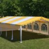 Transform your garden with our 32 x 16 Striped Budget PVC Party Tent Canopy and bring a sense of cheerful atmosphere into your garden. Our Budget PVC series of party tent with galvanized steel frame is perfect solution for wedding, birthday parties, graduation, local societies, clubs, markets, etc.