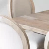 - Classical table with monastery-style legs.This charming combination features both table and chair crafted from Rubberwood. Rubberwood is a sustainable versatile wood known for its durability. The strength of this ultra-environmentally friendly wood means cleaning is a breeze. While the Bordeaux Dining Table features a simple finish, which brings out the unique grain of this wood and produces a slightly weathered look, the Olivia Dining Chairs sport a brushed lime wash finish and understated neutral colour palette to add a more relaxed countryside feel.