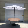 - Description: A beautiful, hand-crafted wooden table designed for outdoor use, featuring a slatted top and sturdy X-shaped legs. It offers a functional and stylish addition to any patio or event space.