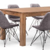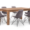 The table is paired with 6 Enzo dining chairs inspired by the classic Eames chair, featuring steel Eiffel legs and upholstered in microfibre with a distinctive weathered look and buttoned detail on the chair back (available in vintage brown, stone and grey). The combination of neutral tones, mild rustic finishes and a touch of vintage class gives this set a character of its own that’s sure to be a highlight of any modern home.