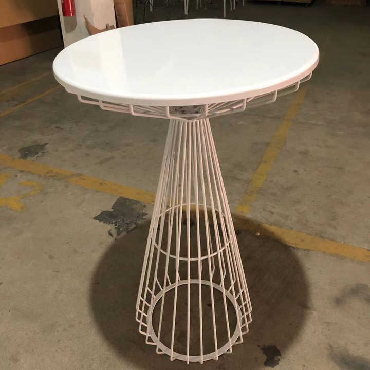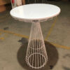 This is a stylish and modern White Wire Cocktail Table Set, featuring a round high-top table and two matching bar stools, perfect for creating a chic and functional space.